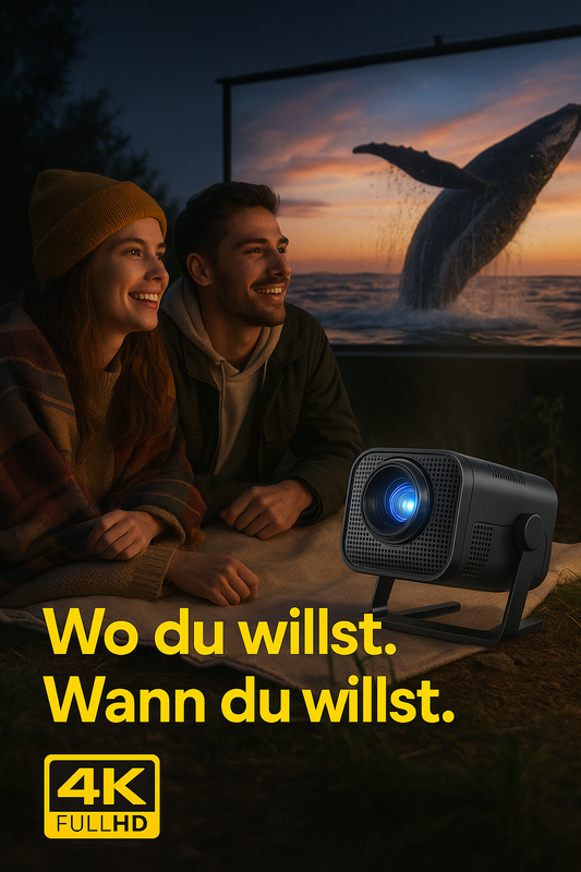 Treyvox™ One – Mobiler Mini-Beamer mit 300 ANSI Lumen, 4K-Support, WiFi6, BT5.0 & Apple-Kompatibilität