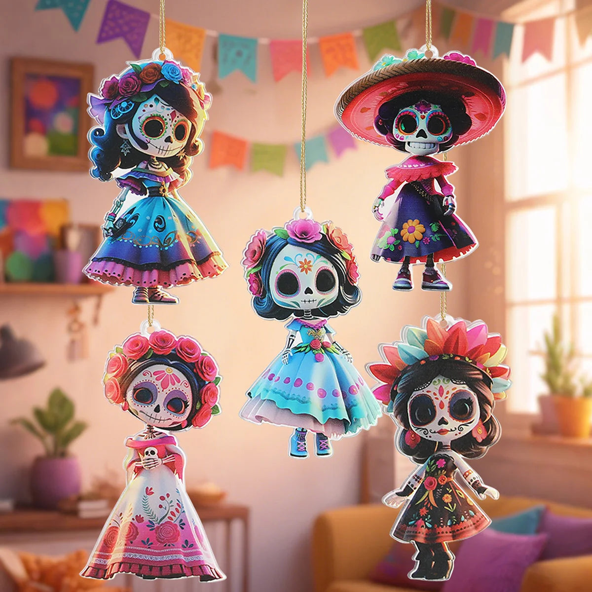 Acryl Puppenanhänger im mexikanischen Stil, 10 Stück
